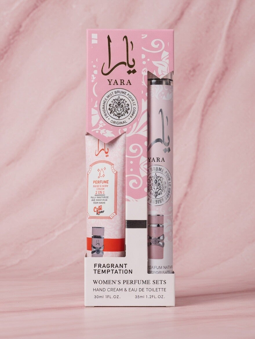 Plongez dans l’univers sucré et féminin de YARA Candy avec ce joli set Fragrant Temptation en packaging rose.